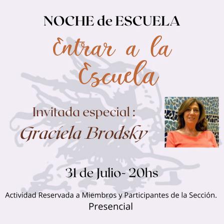 El Miércoles 31 de Julio, a las 20 hs. en la Sede de la EOL Sección Santa Fe, tendremos el gusto de conversar con Graciela Brodsky -vía meet-, alrededor del tema “Entrar a la Escuela”.